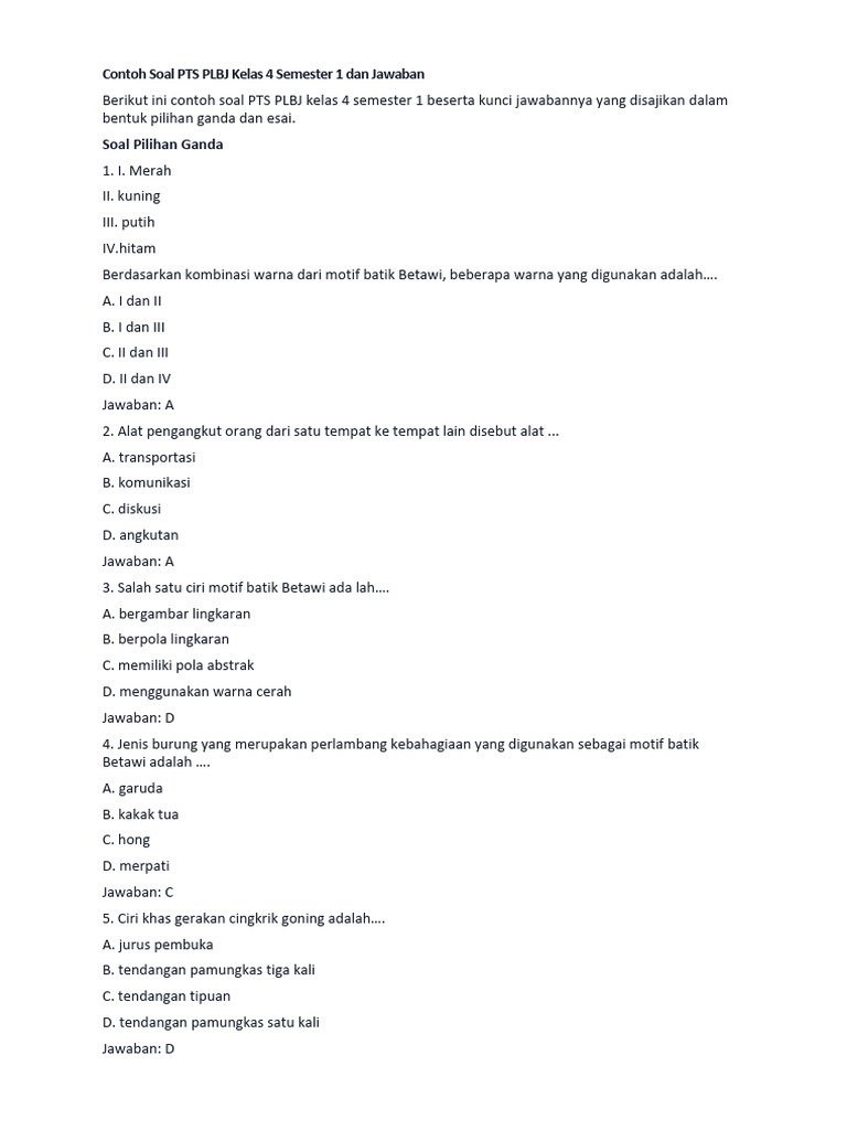 Untuk memastikan pemahaman yang mendalam dan kesiapan menghadapi penilaian, latihan soal menjadi instrumen yang tak ternilai. Artikel ini akan membahas secara komprehensif mengenai latihan soal PLBJ kelas 4 semester 1, menyajikan berbagai tipe soal, tips mengerjakannya, serta pentingnya latihan ini dalam membentuk generasi muda yang berbudaya dan peduli lingkungan. Dengan target sekitar 1.200 kata, kita akan menyelami seluk-beluk latihan soal PLBJ ini.