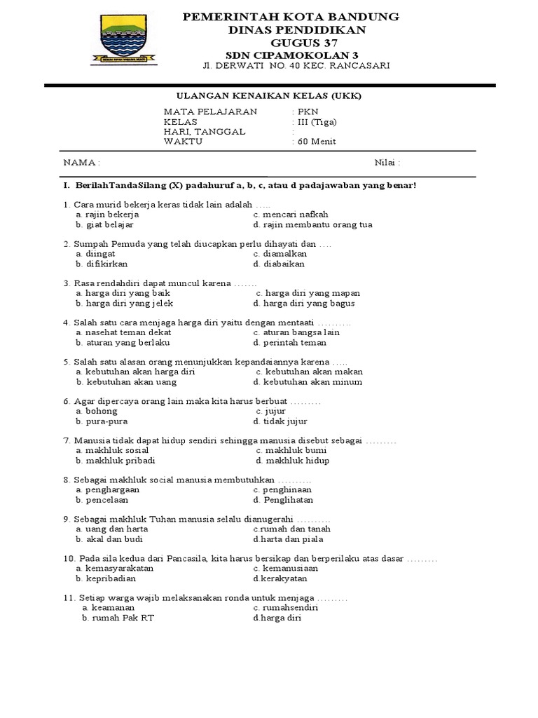 - "Download Soal Ujian Kenaikan Kelas PKn SD Kelas 3"
